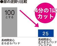 「なみなみシート®」と「さらさらドライシート」のW効果で、肌につく尿を4分の1*にカットし、長時間使用でもおしりさらさら。